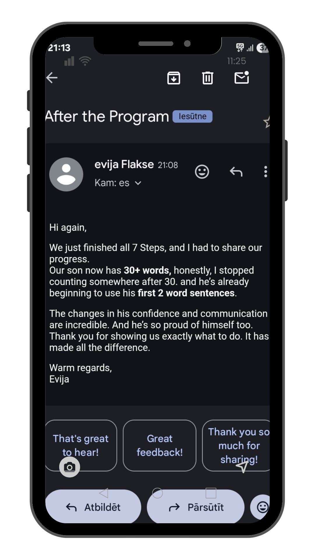 I know how it feels when progress seems slow, and you're unsure if you’re on the right path. Baiba came to me feeling frustrated and uncertain. Her 3-year-old son could only say “mama” inconsistently, and every day felt like a guessing game. Baiba wanted a practical approach that could fit their lifestyle—without long on-site lessons or programs that didn’t work for them.